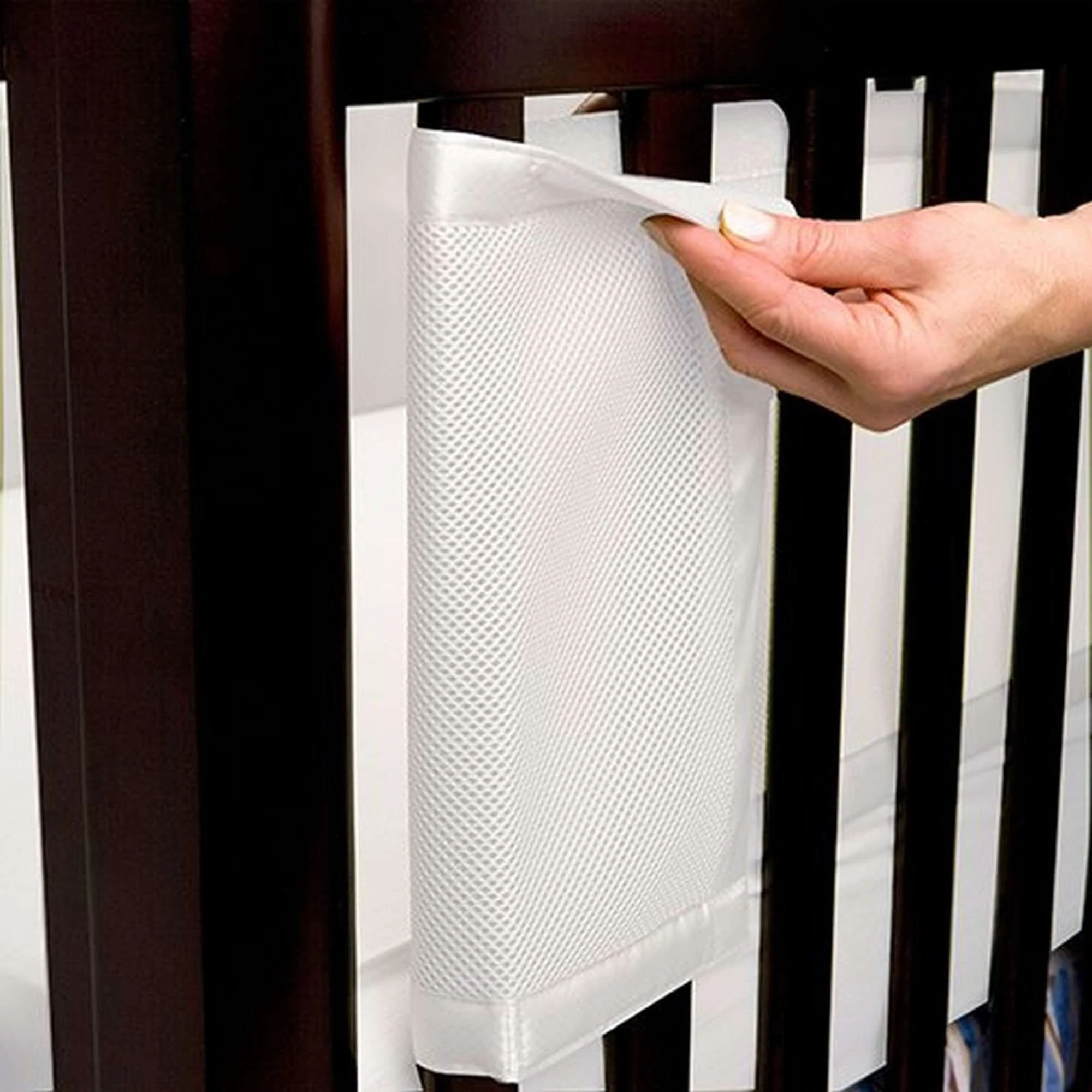 The award-winning, patented, BreathableBaby Breathable Bumper reduces the risks of suffocation, entanglement and climbing. Made with exclusive fabric with A.C.T. Air Channel Technology that promotes air-flow and helps maintain air access. Soft and padded, keeps little limbs safely inside the crib. Tucks below mattress for extra protection. Hypoallergenic poly mesh is machine washable and fast drying. Imported. Fits Standard 4-sided Slatted Cribs.